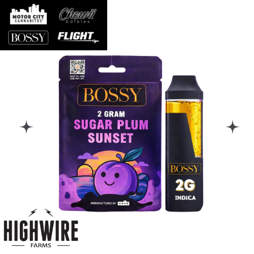 BOSSY 2G DISPOSABLE SUGAR PLUM SUNSET. Sugar Plum Sunset brings back-to-back Bubba Kush genetics together with potent results. The funky undertones of Pre-98 Bubba Kush are enriched by the floral aromas of Katsu Bubba’s phenotype mother. Its generous trichome density and hues of purple foliage give the strain an appetizing appearance alongside pain mitigating effects that relax the mind and body without being excessively sedative.