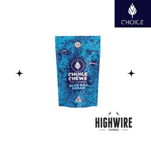Dosage: 10mg x 10 Pieces = 100mg THC A Michigan based company, Choice Chews were created and designed with Michiganders in mind. A passion project from start to finish, our award winning Choice Chews are made completely from scratch in our state of the art GMP certified facility. Our talented confectionary chefs source only the best ingredients and use the purest and most potent distillate available helping ensure that every bag not only is packed full of fruity flavors but also packs a punch.Choice chews are made from scratch in our confectionary building. Choice chefs are on a quest to create the perfect infused gummy. Made with some of the purest and highest testing distillate on the market, Choice Chews has become a crowd favorite!