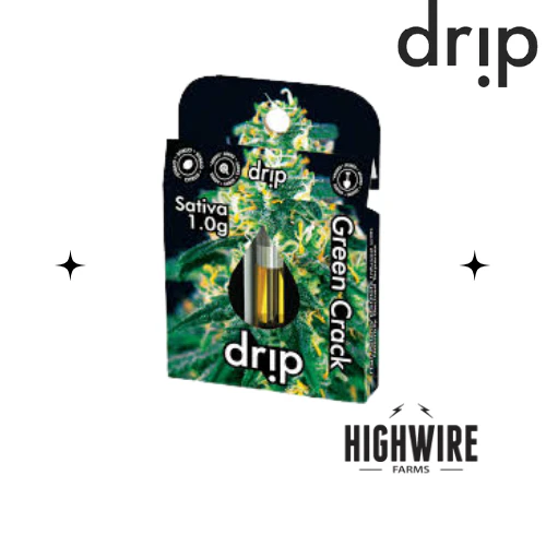 Crack is Wack, but Green Crack smacks!! Green Crack is notorious for it's buzzy and strong sativa effects. Sweet and fruity with some earthy undertones, Drip's Green Crack vape cart hits the spot!