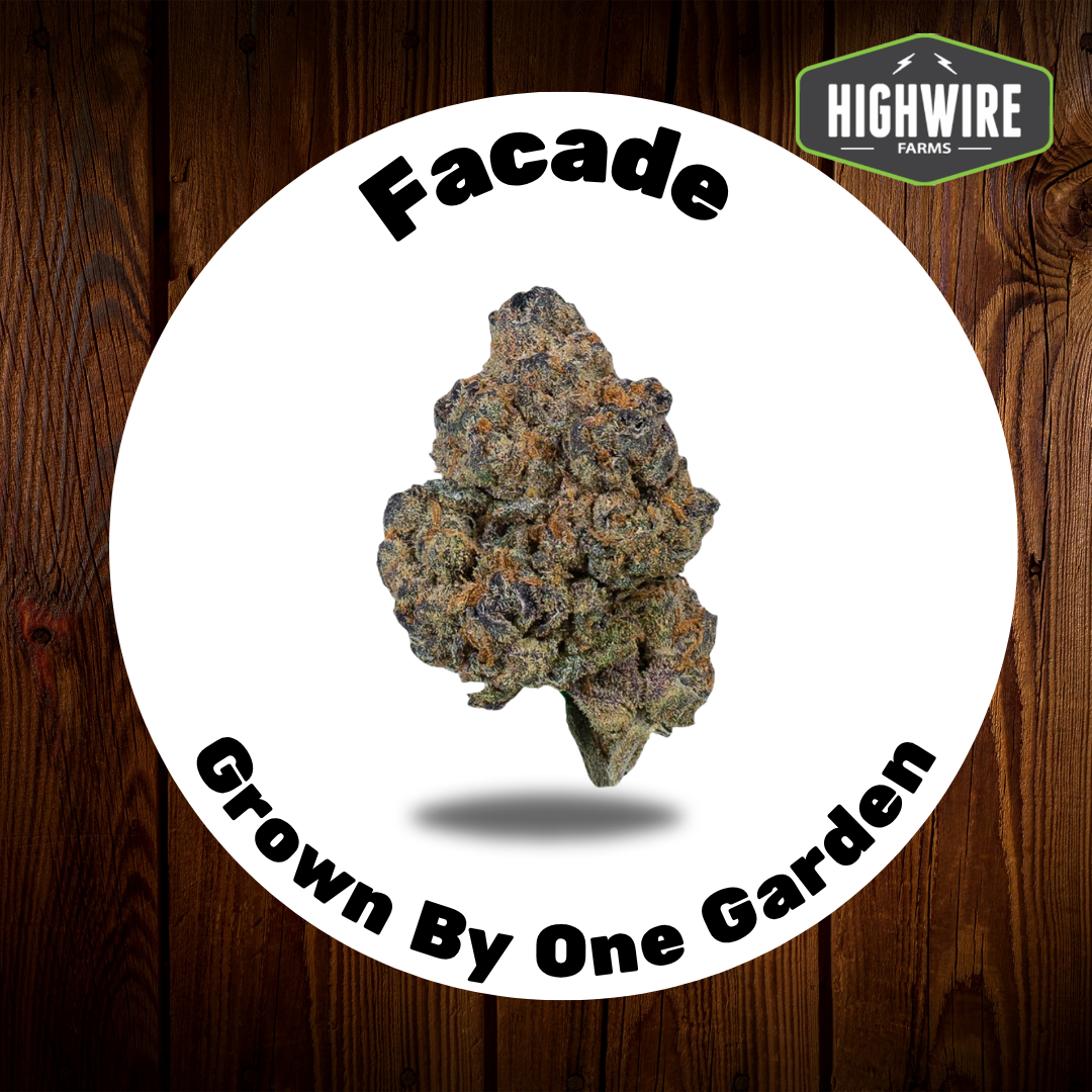 Facade is a hybrid weed strain made from a genetic cross between Eye Candy and Apples and Bananas. This strain is 50% sativa and 50% indica. The strain has a fruity mix of flavors and aromas with effects feeling focused, euphoric, and relaxed!