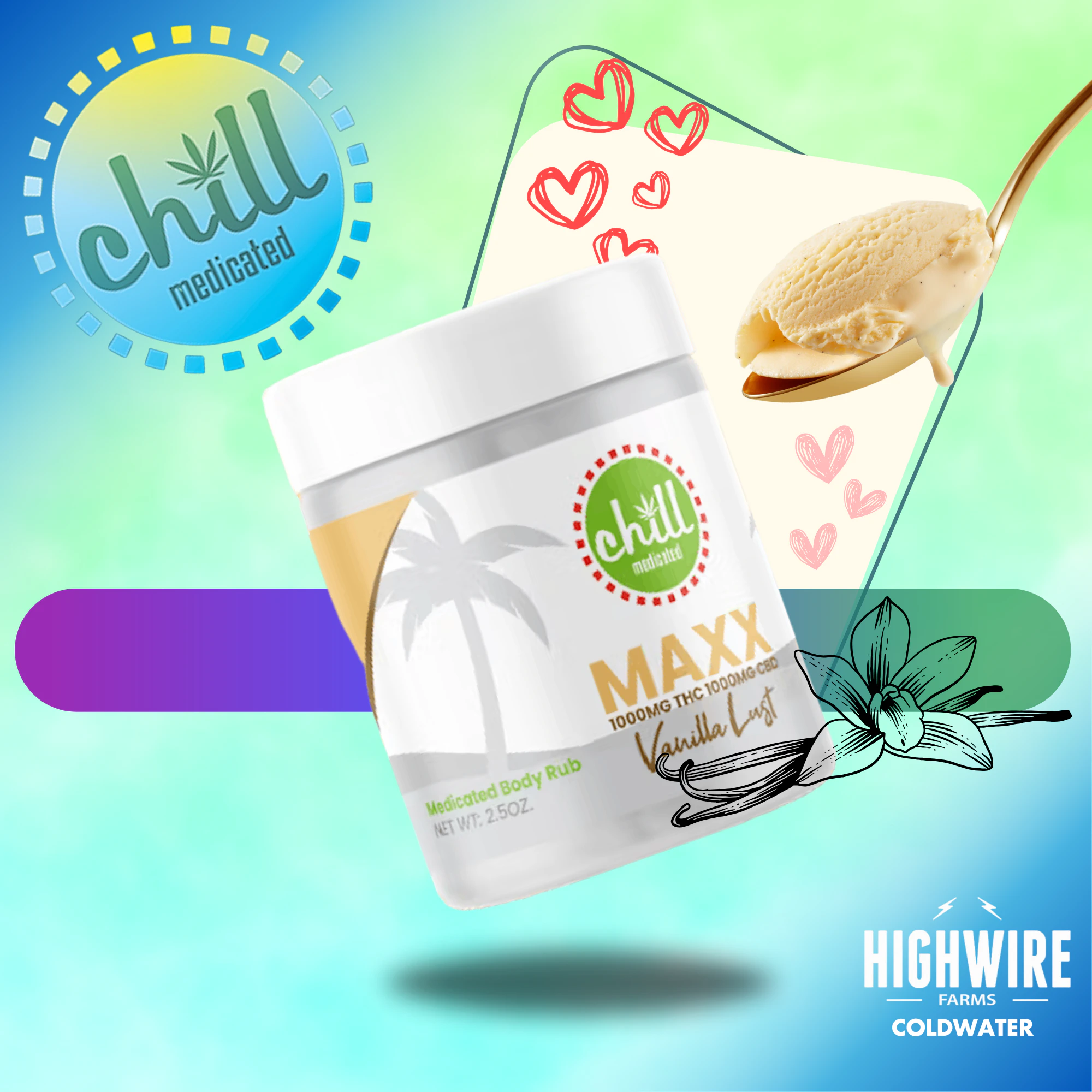 ๐ฎโ๐จ๐งด Are you looking some fast & reliable relief from local pain? Try Chill Medicated Vanilla Lust 1:1 THC:CBD Topical 1000mg Rub; This topical is great for someone dealing with lower back pain, Knee discomfort, shoulder pain & even more! This topical will not give off a "High" when rubbed on skin! Its meant to help with Stubborn Discomfort, Sore Muscles, Stress, Inflammation & much more! Vanilla Lust possesses a rich & creamy smooth aroma that's unforgettable! ๐จ