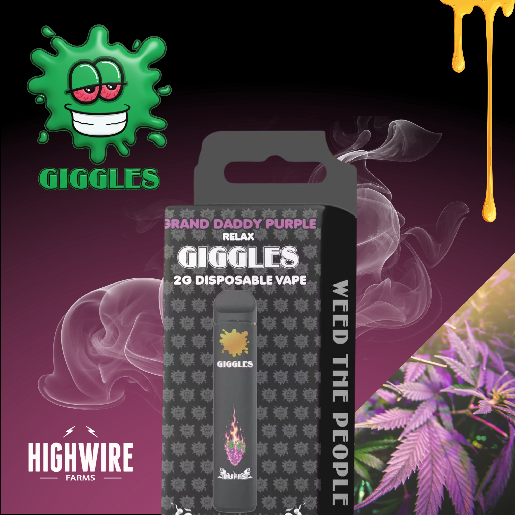 Giggle your way into Highwire Farms and discover your new favorite vibe..? 🤭 Giggle Puffs 2g Disposables are packed with strain specific hash rosin and liquid diamonds, delivering rich, full spectrum effects you can feel from start to finish! Crafted for flavor and potency, each puff brings smooth hits and elevated experiences in a variety of delicious options. 💚 Weed the People! Find your flavor and let the good times roll.