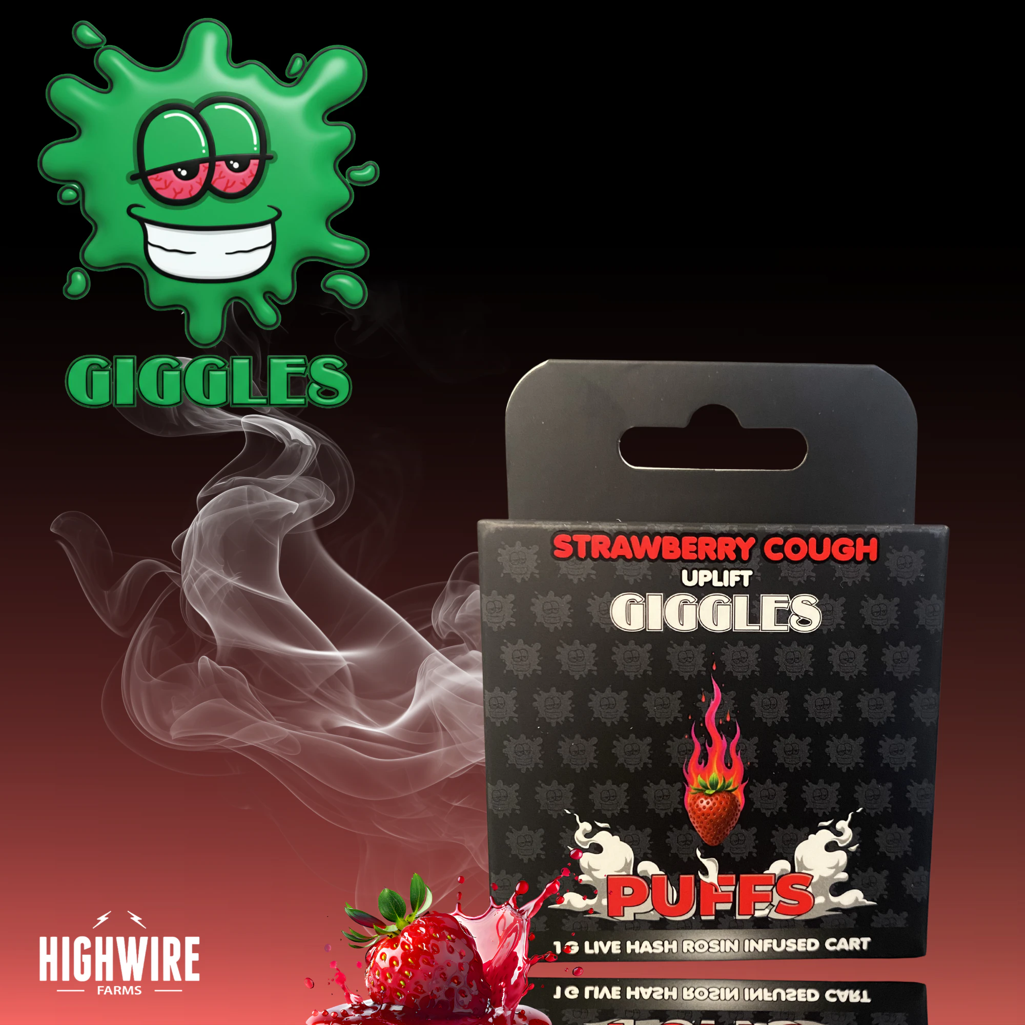 Giggles Puffs Live Hash Rosin Cart Strawberry Cough 1g