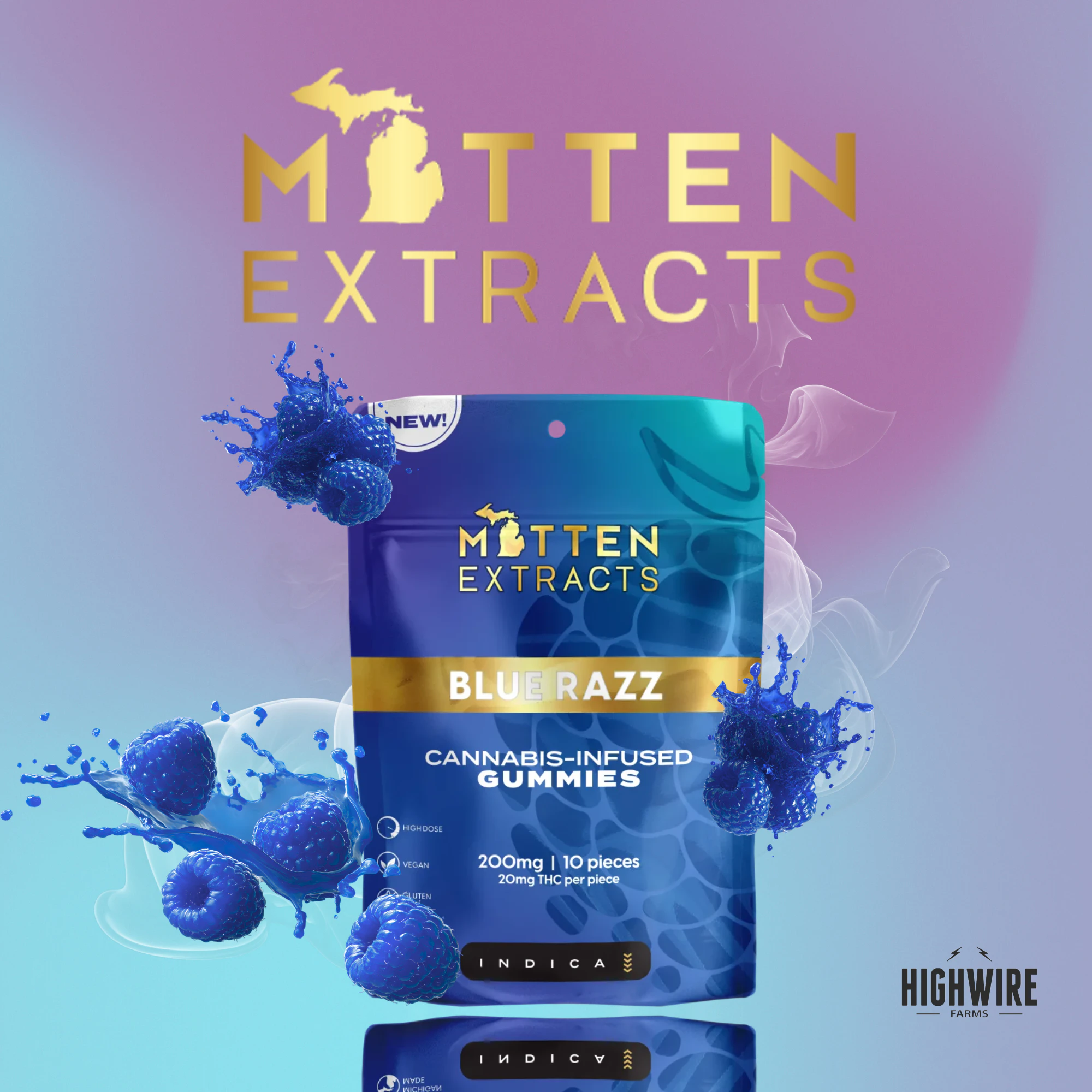 Mitten Extracts Gummies Blue Razz 200mg (Indica)