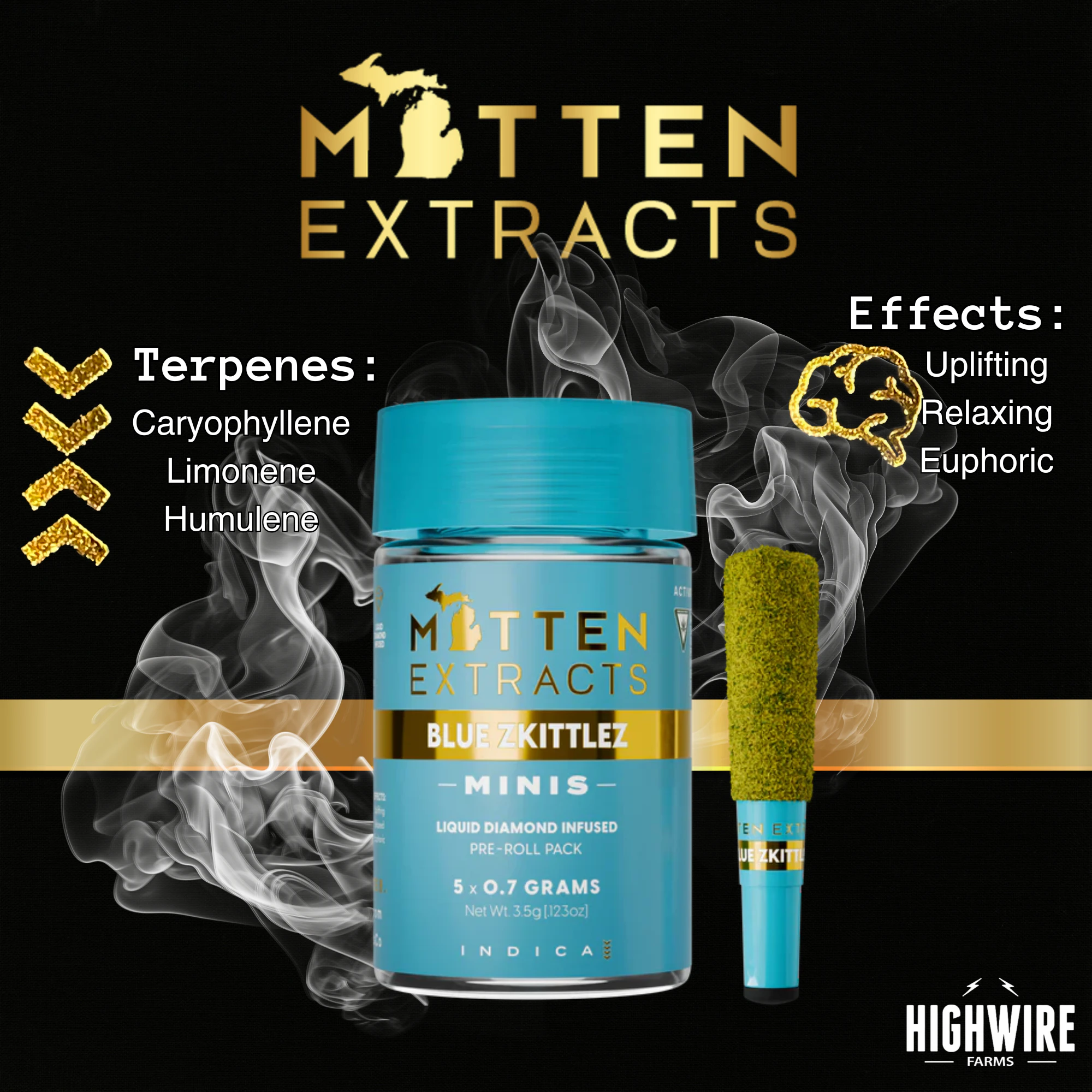 Mitten Extracts Blue Z Infused Preroll 5pk 3.5g