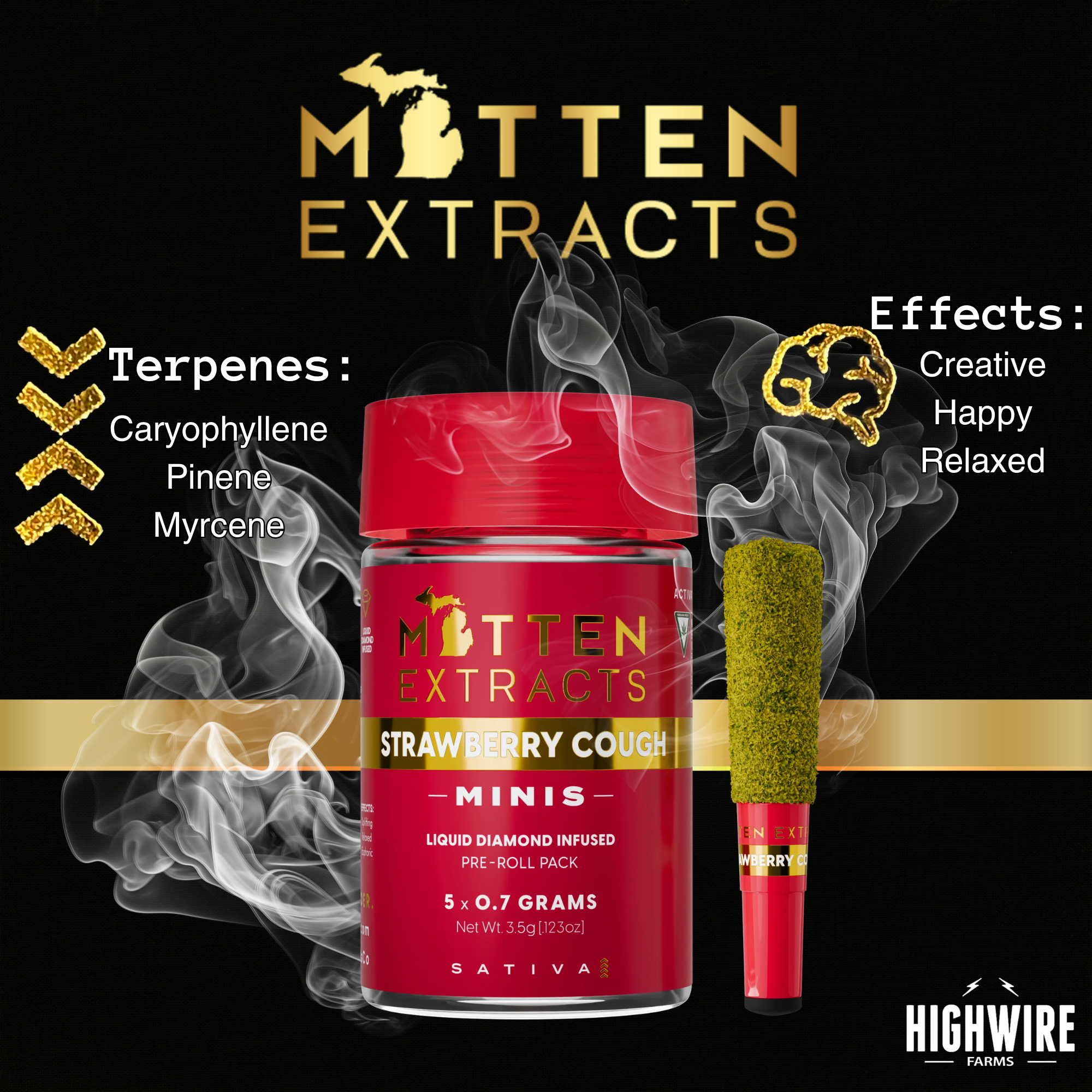 Mitten Extracts Strawberry Cough Infused Preroll 5pk 3.5g