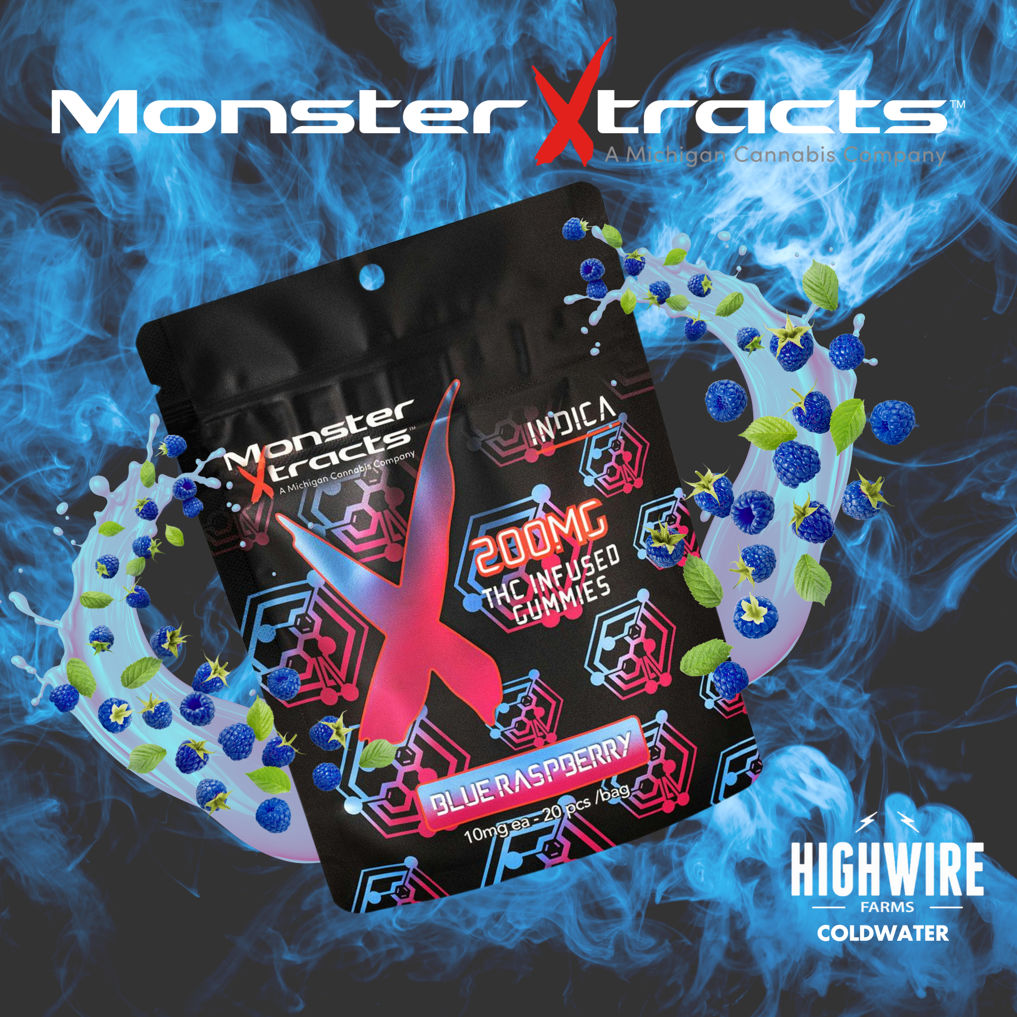 Monster Gummies Blue Raspberry 200mg (Indica)